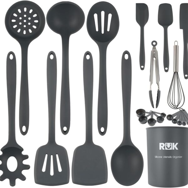Kitchen Utensils Set, 24 Pcs Silicone Cooking Baking Spatula Spoon Utensils Sets with Holder for Nonstick Cookware, 446°F Heat Resistant, Kitchen Gadgets Tools Essentials
