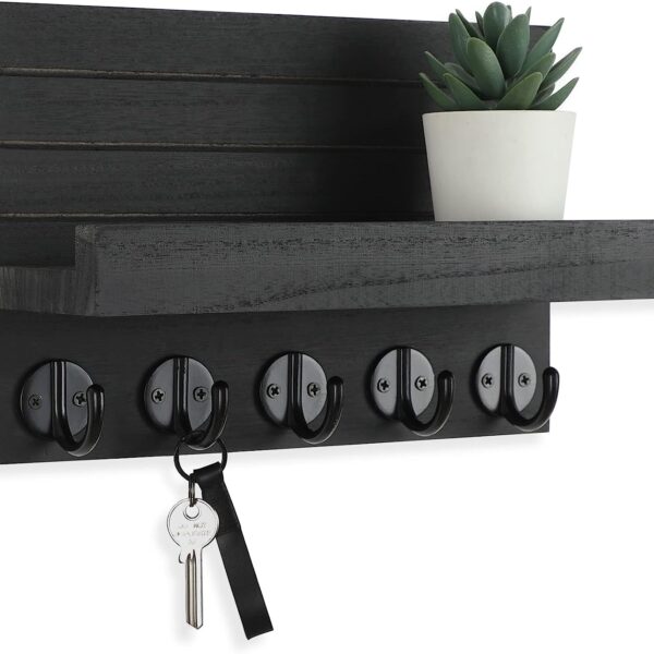 Key Holder for Wall, Decorative Key and Mail Holder with Shelf Has Large Hooks for Bags, Coats, Umbrella – Paulownia Wood Key Hanger with Mounting Hardware