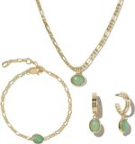 - Complete Jewelry Set: This jewelry set includes a stunning green Dongling stone (natural jade)pendant necklace and a matching pair of hoop earrings and a pendant Bracelet. It offers a coordinated and elegant look, allowing you to effortlessly accessorize for any occasion.
