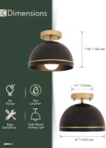 - Product dimensions: The hallway ceiling light(Shade Diameter:10 inch /260mm,Lamp Height: 7.5inch/190mm ) featuring a matte black metal shade and gold metal base.